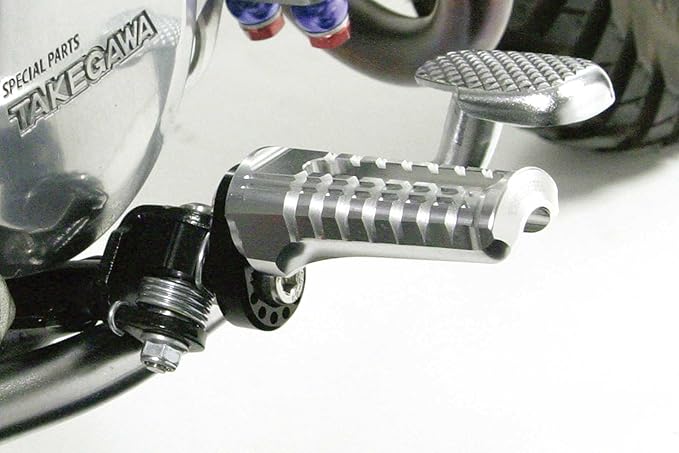 ノーマルより低い下記図内A、又はGポジションでもバンク角は減少しません。この他にも万が一の転倒においてのカスタムクラッチカバーへの低ダメージ化を考慮した可倒角度への変更や滑り止め形状に工夫を凝らすなど、機能の隅々まで追求しています。型ステップの最高峰を目指したオールアルミ削り出しアジャスタブルステップキット。