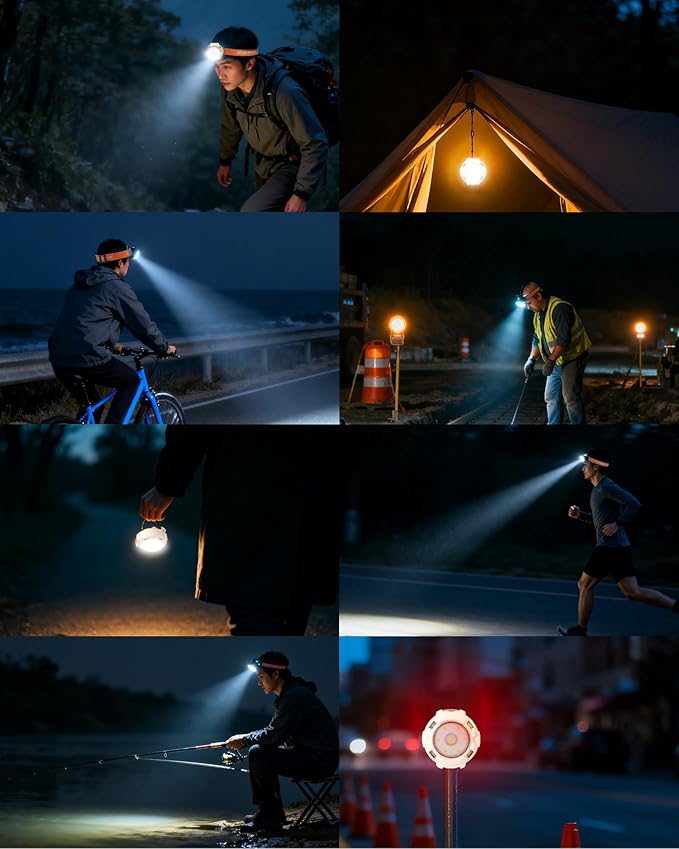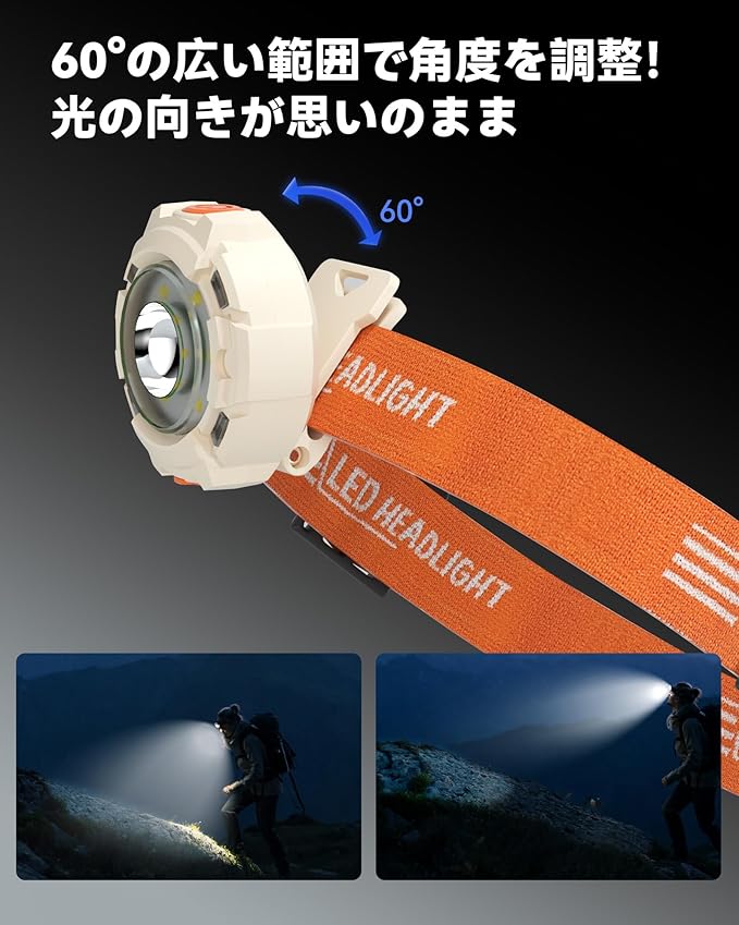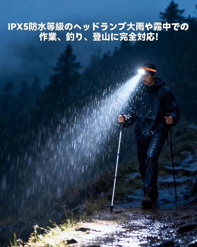 【IPX5防水&多用途】IPX5防水等級のヘッドランプ、大雨や霧中での作業、釣り、登山に完全対応! 超軽量34gでポケット収納可能、キャンプ、災害備品、夜間ジョギング、ペット散歩まで大活躍。