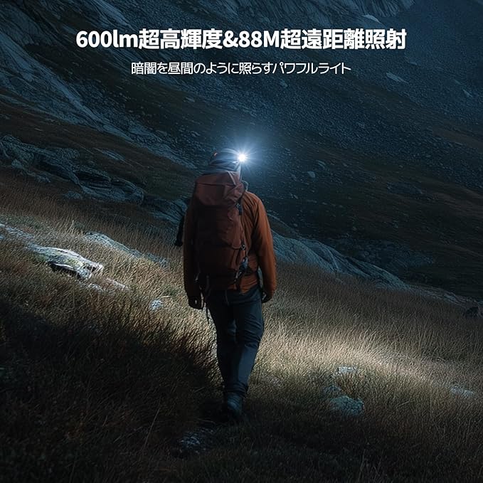 【88mの射程&600lmの明るさ!最強ヘッドライト登場!】最大射程88メートル、明るさ600ルーメンのパワフルなヘッドライトで、暗闇を明るく照らし、アウトドアや夜間作業に最適!