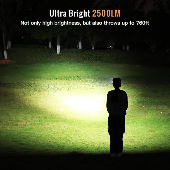 高輝度 & 長時間駆動:暗い道や作業スペースを、強力な2500ルーメンの光で照らします。大容量のリチャージブルバッテリーと組み合わせることで、ヘッドランプは高い明るさ設定時でも信頼性の高い駆動時間を実現します。夜間のハイキング、キャンプ、または暗闇での作業に最適な相棒です。