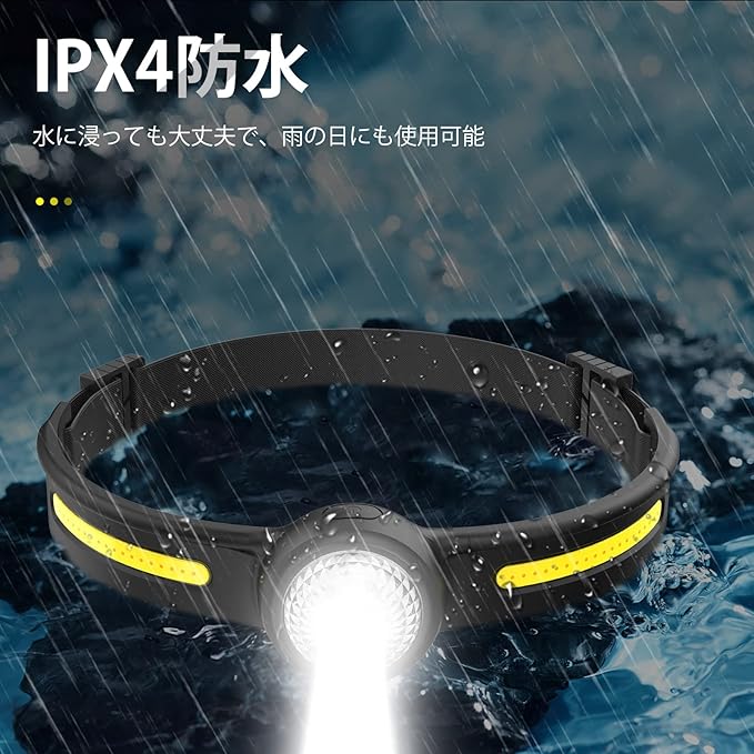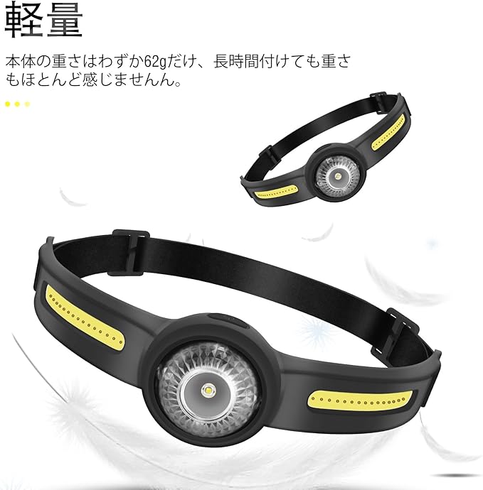 【IPX4防水&折り畳み式】ヘッドランプはIPX4防水機能を備えており、水や風雨などに耐えられ、雨天でも使用可能です。ヘッドバンドはシリコン材料を採用しており、伸縮性が良いので、簡単に折りたたむことができます。お折りたたみ後、手のひら程度のデザインは簡単に収納可能で、持ち運びやすいです。そして、夜釣りなどの場合は長時間装着しても首にストレスを与えません。ヘッドバンドはニーズにお応じて調節可能だ。本体の重さはわずか62gだけ、軽量で頭に着用して時圧力がかからず、長時間付けても重さもほとんど感じせず、気軽に着用できます。山登り、作業、夜釣りなどの場合は長時間装着しても首にストレスを与えません。