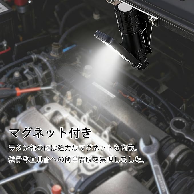 【高輝度COBライト】高品質なCOB LEDを採用で、広範囲を明るく照らす。従来のLEDより光のムラが少なく、均一で広い範囲を明るく照らします。暗所での作業や点検、アウトドアでもプロのような明るさを実現します。
