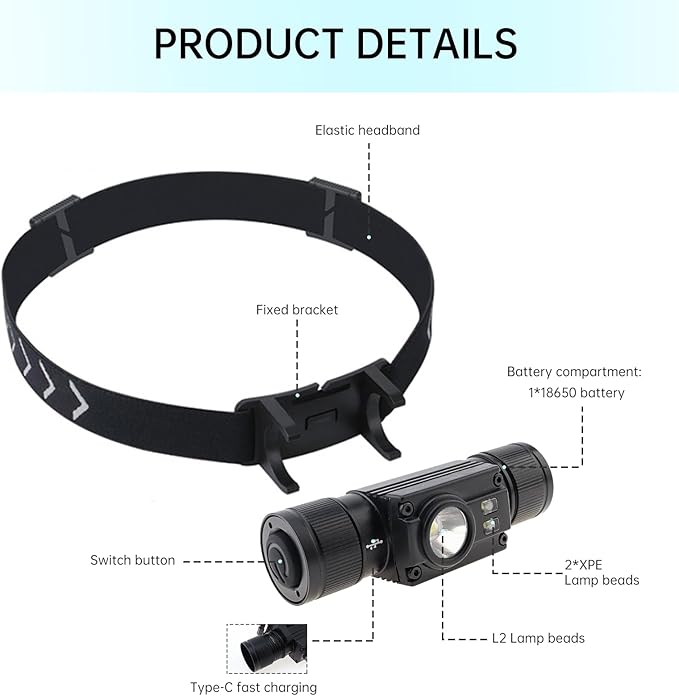【軽量で快適なヘッドバンド】長時間の使用でも快適なヘッドバンドを採用。軽量設計で負担を軽減し、快適に夜釣りや登山、キャンプ、夜間作業などに使用できます。