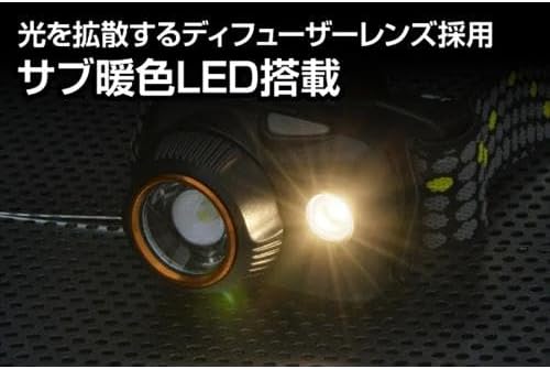■仕様■ ・本体サイズ(高さ 幅 奥行):45.5 66.8 42.8mm ・本体重量:約105g(電池含む) ・明るさ:700ルーメン(Highモード時)/ 300ルーメン(Midモード時)/ 30ルーメン(Ecoモード時)/ 10ルーメン(サブ暖色) ・電源:専用リチウムポリマー充電池 3.7V 800mAh または 単4形アルカリ電池 3本 ・充電時間:(約):2.5時間 ・連続使用時間:2時間(Highモード時)/ 5時間(Midモード時)/ 25時間(Ecoモード時)/ 40時間(サブ暖色) ・耐水耐塵:耐塵・防滴仕様(IP64準拠) ・付属品:すべり止め付きヘッドバンド、Micro USBケーブル(50cm)、専用充電池