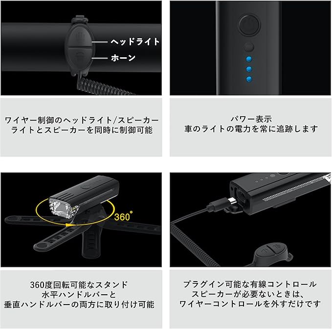 有線リモコン制御とホーン機能:有線リモコンを使用することで、操作が簡単になり、安全性が向上します。120dbのホーン機能は、他の車両や歩行者に対して効果的な警告が可能です。