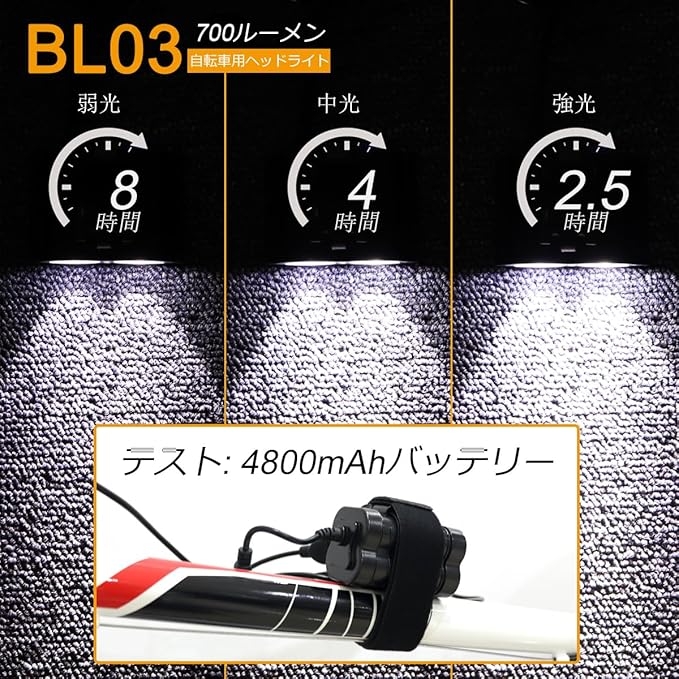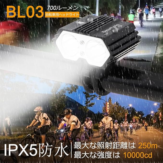 SecurityIng USB給電式 自転車 ライト 700ルーメン 照射距離250M IPX5防水 ロードバイクライト 4つ調光モード 自転車前照灯 バイクヘッドライト 自転車用ライト アウトドア サイクリング キャンプ ハイキング (バッテリーパックは含まれていません) | KAZESHOP