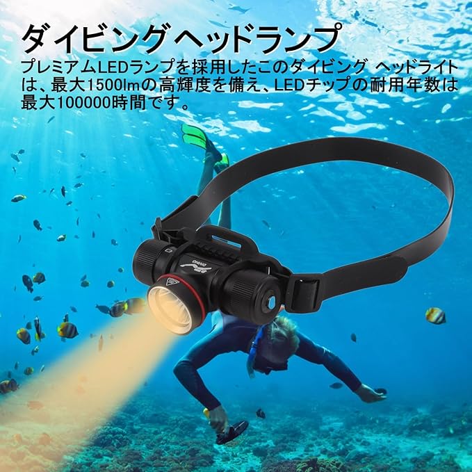 スイミングヘッドライト ダイビングヘッドランプ 耐衝撃性 海水耐食性 スキューバダイビングヘッドランプ 1500LM ダイビング用LEDヘッドライト スキューバダイビングヘッドライト IPX8防水 水中ヘッドランプ | KAZESHOP