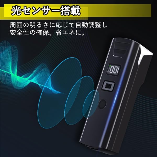 光センサー搭載。周囲の明るさに応じて自動調整し、夜間の安全性を確保し省エネ。