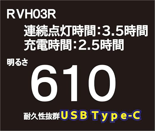 総重量わずか70g タイプC充電式 充電時間:2.5時間 連続点灯時間:10時間 (※HIGHモードスポットのみ)