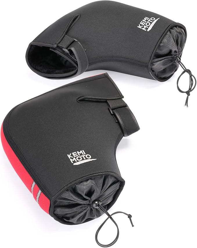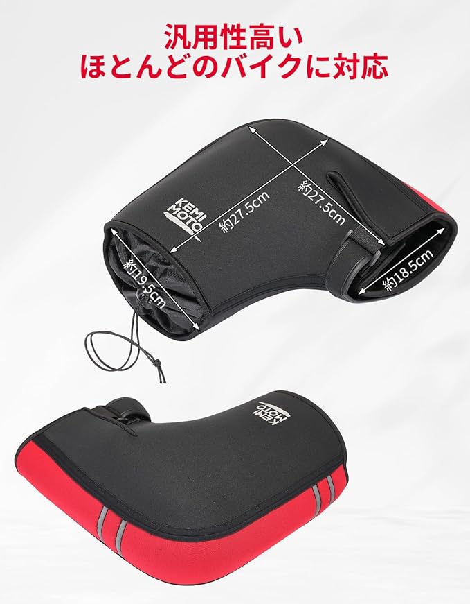 KEMIMOTO バイク ハンドルカバー スクーター 防風 防水 pcx 125cc xmax ミニバイク オートバイ 原付バイク 洗える 秋冬 防寒対策 防寒具 ハンドルウォーマー フリーサイズ レッド | KAZESHOP