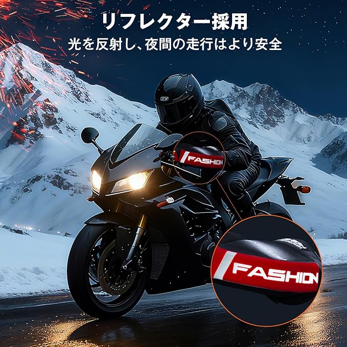 【夜行安全】バイクハンドルカバーは、表面と側面にリフレクターが付き、夜間の対向車からの視認性を大幅に向上し、走行安全性を確保します。