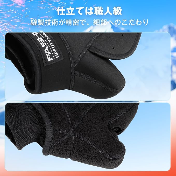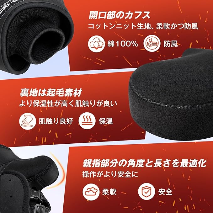 【最適化アップグレード】バイク用ハンドルカバーの開口部は伸縮性のあるコットンニットのカフスを採用し、手首に密着して冷気の侵入を防止します。市場調査と顧客からのフィードバック,親指部分の角度と長さを最適化し、従来品の操作不便を解消し、快適性と便利性を両立させました。