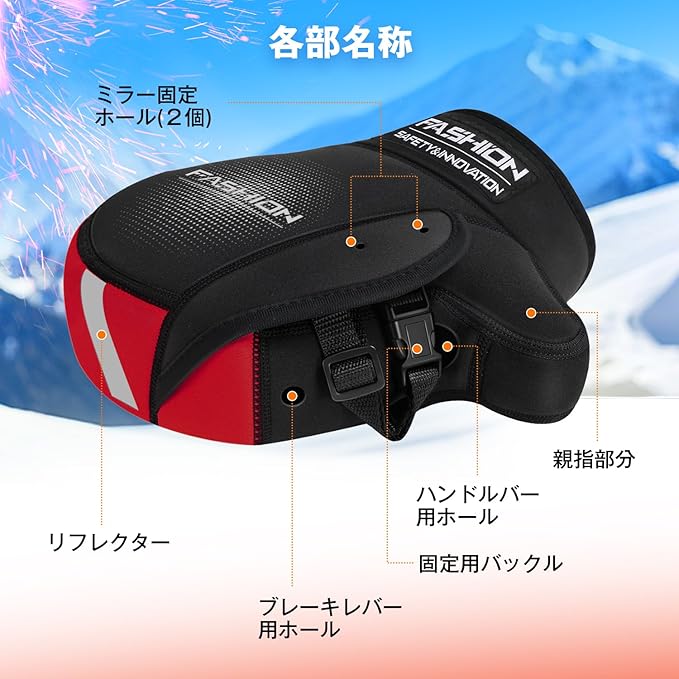 [Homwarm] 【2025アップグレード】 バイクハンドルカバー 防水 防風 防寒 保温 バイク用 三層構造 ネオプレン素材 起毛裏地 秋冬防寒用 夜間反射 取付簡単 洗濯可能 オートバイ スクーター モペット 小型/大型自転車に適用 (レッド) | KAZESHOP