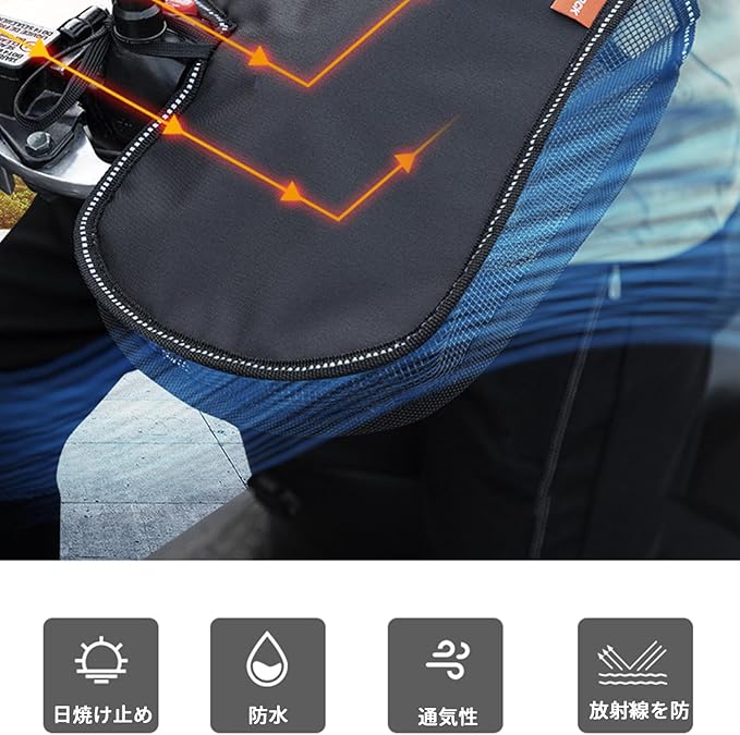 【日焼け予防強化】 99.9%の紫外線を遮断する高品質のアルミ箔反射層がハンドルカバーに備わっています。強い日差しを強力に反射し、手を紫外線から確実に保護します。通勤や通学に最適で、夏の日焼けから守ります。