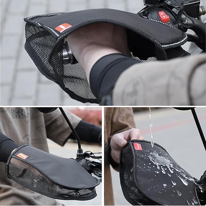【高品質な素材】: オートバイ手袋は防水素材断熱アルミ生地で作られ、底には通気網があり、防水、日焼け止め、乾燥が速く、暑い夏のサイクリングに適している。