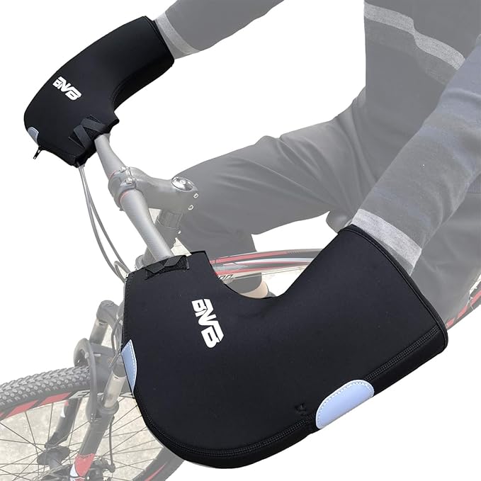 防寒、防水、防風:材質:SBR ネオプレン。ネオプレンはウェットスーツ用の理想的な防水材料と言われており、これはこのハンドルウォーマーが雨の日、雪の日、大風の日に使用できることを意味しています。優れた防水性能を備えたライナーが内蔵された自転車防寒ハンドルカバー(完全防水ではありません)。 防寒保温効果抜群なのでマウンテンバイクやロードバイクにとって便利です。仕事に、通勤に、通学に、毎日バイクに乗る人のための冬の寒さ対策。