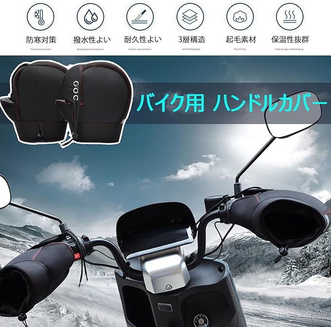 バイク ハンドルカバー 防風 防水 防寒 ハンドルカバー バイク 防水防寒 バイク用ハンドルカバー 冬用 裏起毛 バイクハンドルカバー 原付 ハンドルカバー バイク用 厚手 原付用ハンドルカバー 通勤通学 汎用 | KAZESHOP