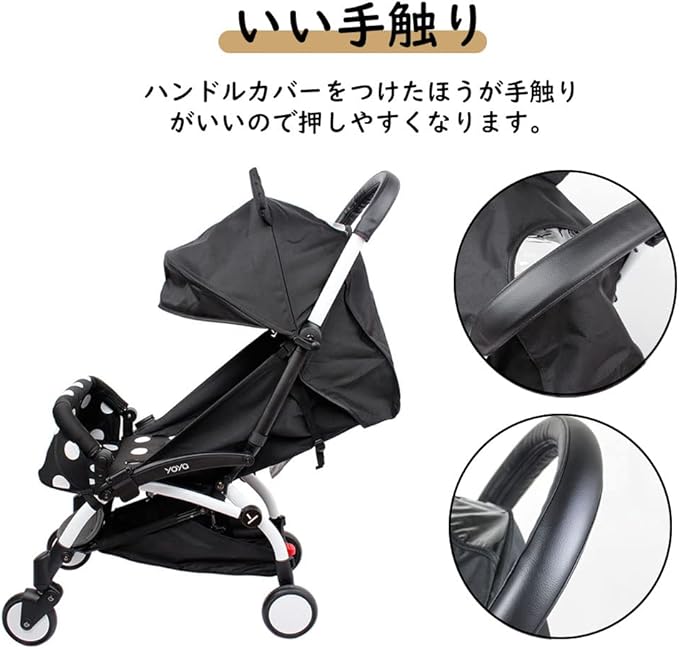 【汚れ防止】ハンドルカバーを付けた場合、ベビーカーハンドルの黒の部分が汚れずにいつも清潔に保てます。柔らかい布で拭いて簡単にきれいにす。
