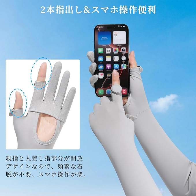 [Famimor] アームカバー uvカット 手のひら開口 手袋 日焼け止め 夏 冷感 日焼け防止 腕カバー 指先までカバー 2本指出し スマホ対応 滑り止め ロング 通気 吸汗速乾 冷感アームカバー ゴルフ 自転車 バイク 運転 作業用 uvカット手袋 | KAZESHOP