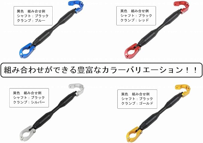 シャフトとクランプは別売りで設定しておりますので、色々なカラーの組あわせが可能です。