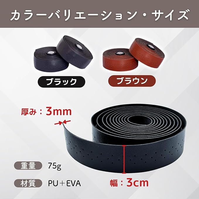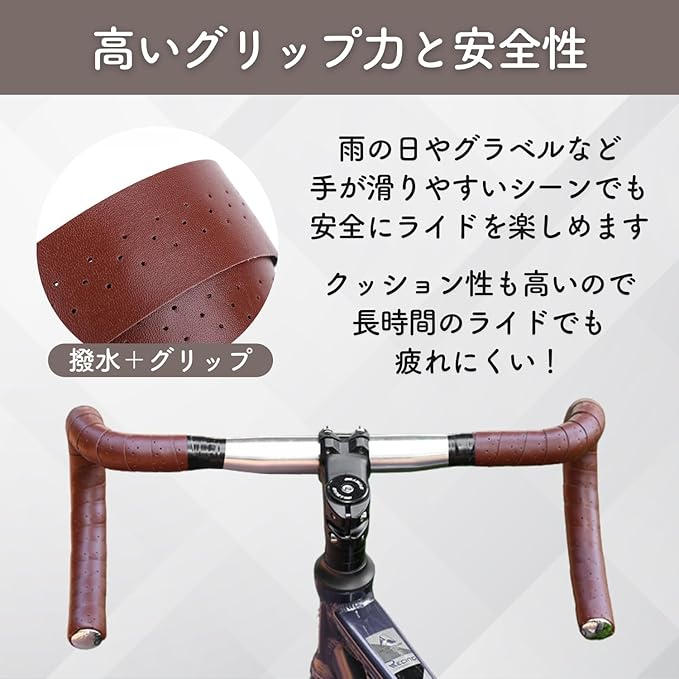 滑り止めとしても適しているバーテープであり、ロードバイクのドロップハンドルやマウンテンバイク、クロスバイクなど様々なタイプの自転車に対応しています。 また、ゴルフやテニスラケットのグリップテープ(カバー)としてもお使いいただけると思います。