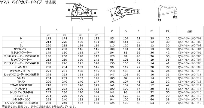 ヤマハ発動機(Yamaha) バイクカバー Fタイプ 立体裁断ぴったりフィット 破れにくい 国産 防水 厚手 Lサイズ Q5K-YSK-160-T02 防炎 盗難防止 前後が分かりやすい ロック対応 大型ベンチレーション付 | KAZESHOP