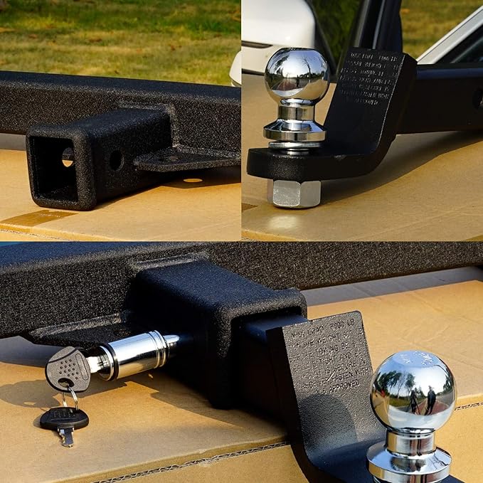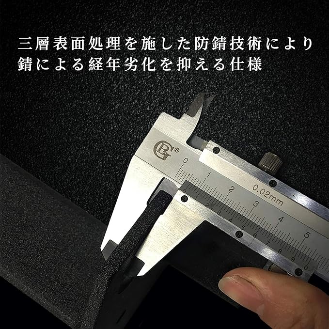 【構造】:耐久性に優れたスチールを採用し、(精密鋳造)製法によるすごく丈夫です。三層表面処理を施した防錆技術により、錆による経年劣化を抑える仕様。ボールマウントはガタツキ音を低減する。それに、鍵付きセットなので、盗難防止対策もバッチリ。