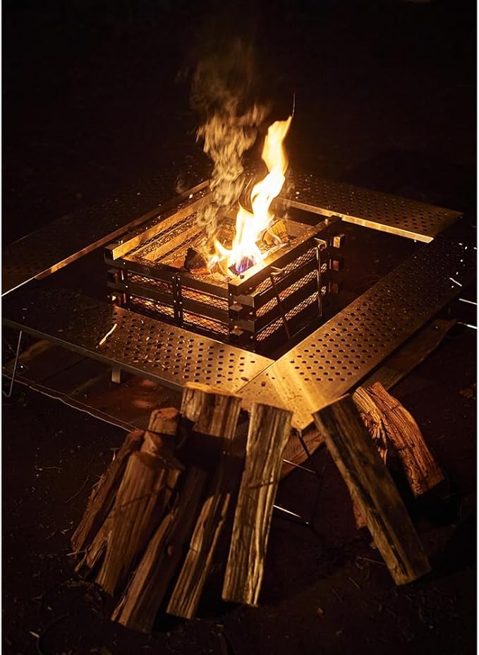 【安全性】焚火台を囲むようにしてセットするので、不用意にお子様が近づいてやけどしてしまったり、つまずいて焚火台を倒してしまうリスクを回避できます。