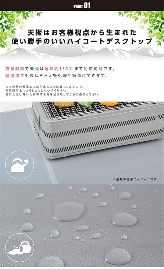 ●簡易耐熱・耐滴加工のハイコートデスクトップ。