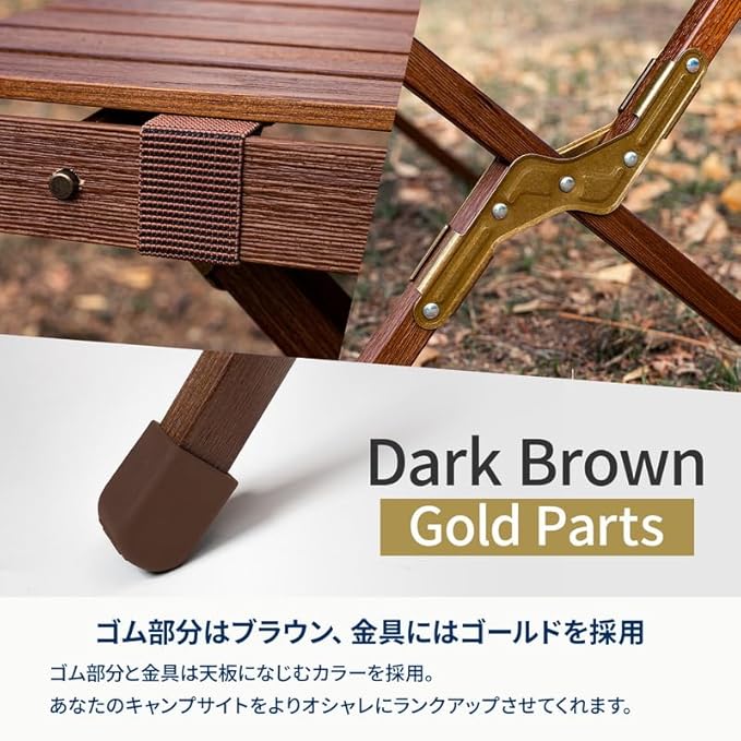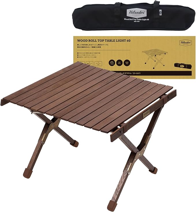 Hilander(ハイランダー) ウッドロールトップテーブルLIGHT60 DB/GOLD ダークブラウン ゴールド キャンプ アウトドア ロールテーブル 天然 ソロテーブル コンパクト おしゃれ | KAZESHOP