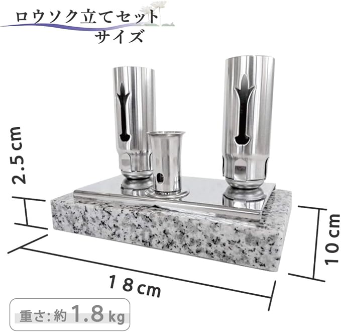 御影石台座の重さで大きなローソク、線香でも倒れないので安心です。お客様からの「ステンレス金具だけでは軽すぎて心配」「今ひとつ高級感がない」とのお声から生まれた製品です。
