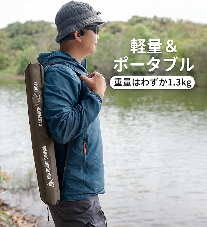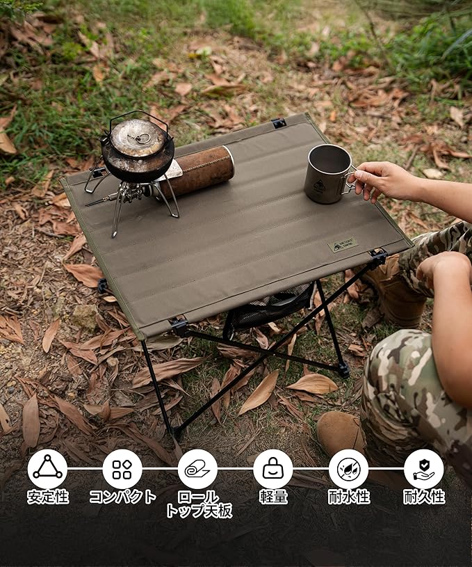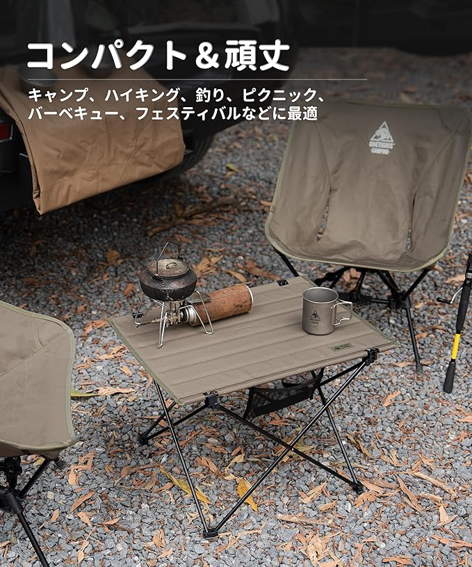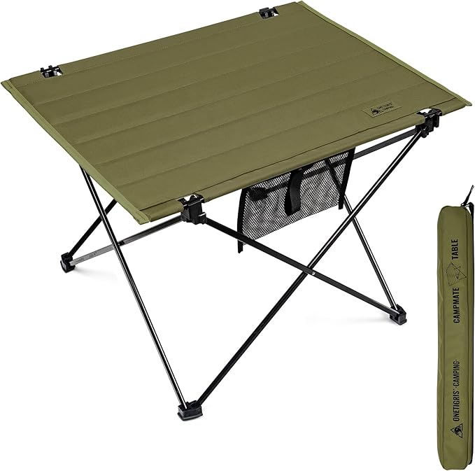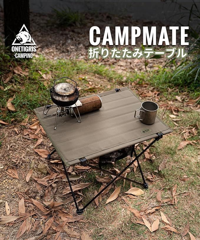 OneTigris CAMPMATE キャンプテーブル アルミ一体型フレーム 折りたたみ式 ポリエステル製天板 組立簡単 耐荷重30kg 持ち運び便利 手入れ簡単 収納バッグ付き 57 x 42 x 39.5 cm | KAZESHOP