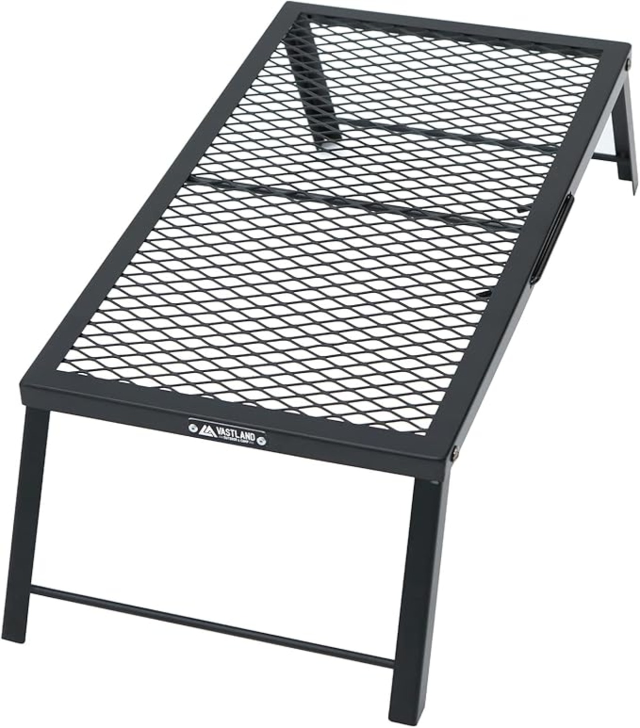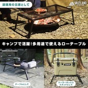 調理用の五徳だけでなく、簡易的なテーブルやクーラーボックスのスタンドなど、キャンプ・アウトドアでマルチに活躍する「焚き火メッシュテーブル」です