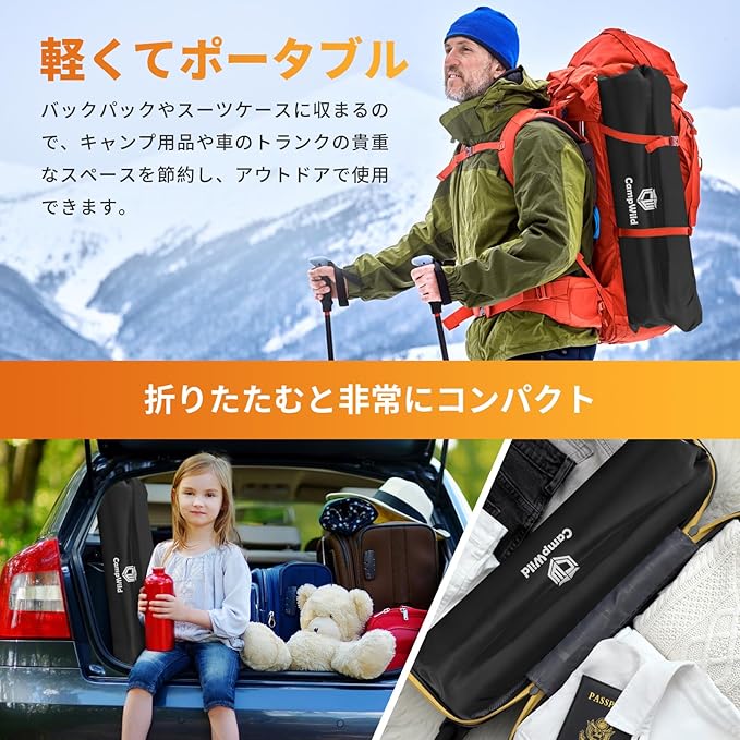 持ち運びが簡単な便利さ:テーブルトップは広々としていますが、コンパクトなサイズ(73cm 22cm 16cm)に簡単に折りたたむことができ、重量もわずか5.1kgです。小さな収納パッケージに入れることで、屋外冒険の際にも簡単に持ち運びができ、屋内使用時にもスペースを節約できます。