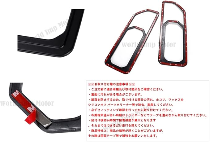 ※※お取り付け際の注意事項 ※※ ・ご注文前に適合車種及び取付箇所をご確認ください。 ・裏面に汚れがある場合がございます。 ・脱落を防止するため、取り付ける部分の汚れ、ホコリ、ワックスをシリコンオフ パーツクリーナー等で除去、脱脂してください。 ・必ずフィッティング確認を行ってから取り付けてください。 ・冬期等気温が低い時期はドライヤーなどでテープを温めながら取り付けてください。 ・貼付け後約24時間で接着強度が最大となります。それまではできるだけ走行を控えてください。 ・商品特性上、商品の端等が浮くことがございますが、その際は両面テープ等で補強をお願いいたします。