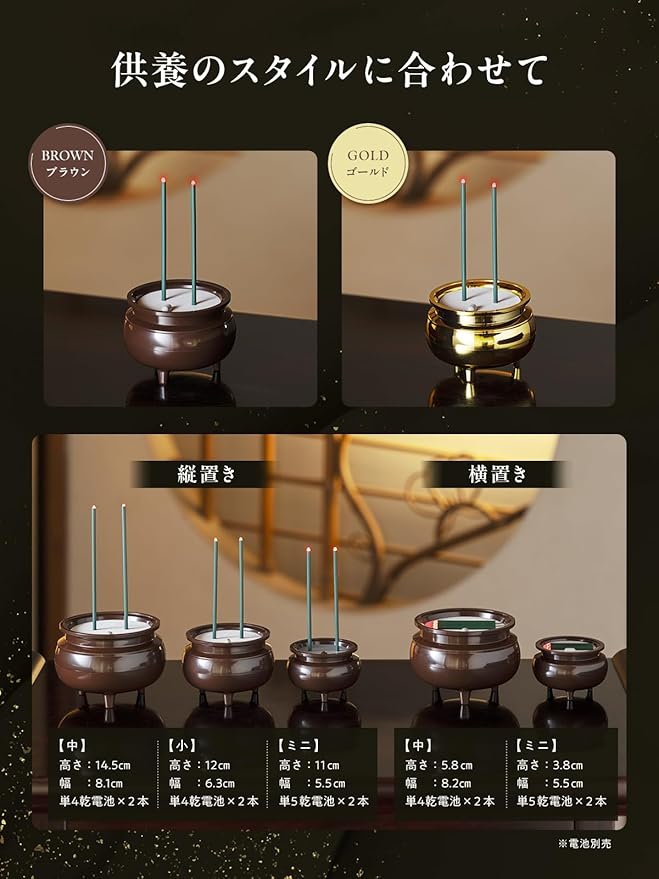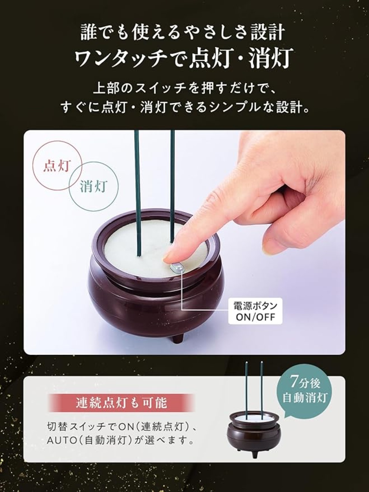 ✅高齢者や子どもがいるご家庭でも安心 火を使わない構造のため、高齢者や小さなお子様、ペットのいるご家庭でも安心してご使用いただけます。集合住宅や高齢者施設、病院など火気の使用が制限される場所でも安心して使え、現代の生活環境にぴったりなご供養アイテムです。