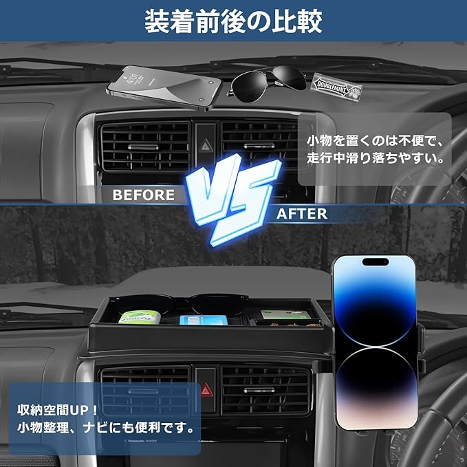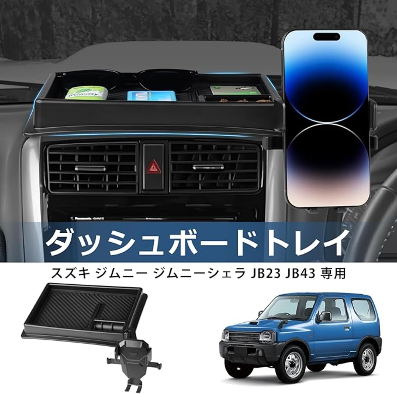 Auto Spec スズキ ジムニー ジムニーシェラ JB23 JB43 に適合 ダッシュボードトレイ 車内収納ボックス 3Dトレイ 携帯ホルダー スマホホルダー付き 360度回転 小物入れ 車種専用設計 内装 パーツ 滑り止めラバーマット付き 収納アクセサリー 装着簡単 メーカー直営 | KAZESHOP
