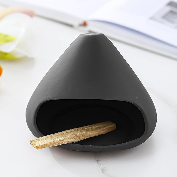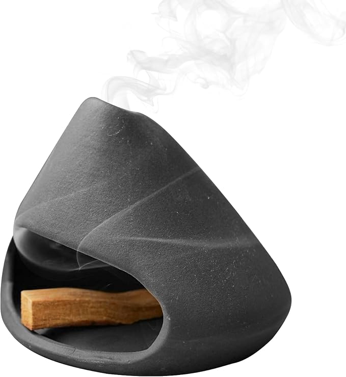 MrMrKura パロサントホルダー 香炉 セージホルダー セラミック パロサントスティック パロサント 陶器 香木 受け皿 仏具 おしゃれ 耐熱 聖木 かわいい お香立て 新築祝い シンプル ヨガ 茶道 瞑想 リラックス解消 癒やし 浄化 (ブラック) | KAZESHOP