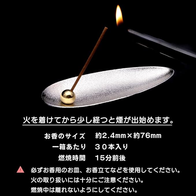 パロサントの線香とお香立て1個のセット販売です。届いてすぐにご使用いただけます。◆商品概要 お香のサイズ 約2.4mm x 76mm。 1箱あたり 30本入り。燃焼時間 15分前後