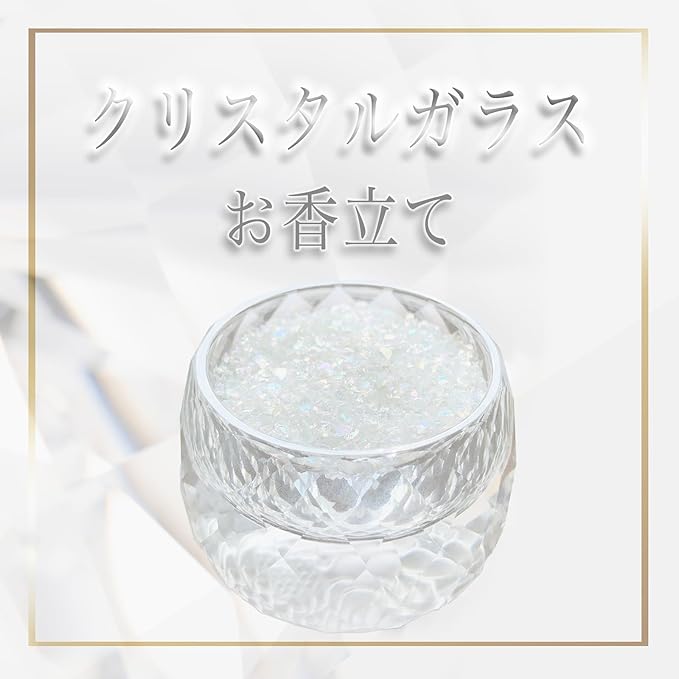 【商品の強み】この香炉の最大の強みは、クリスタルガラスが放つキラキラとした輝きで空間を一層引き立てることです。お香立てやインセンスホルダーとして優れた機能性を持ちながらも、その美しいデザインにより、どの部屋に置いてもインテリアとして映えます。付属のガラスチップは、お香が安定して立つようサポートし、煙が美しく立ち上る様子を楽しめます。使いやすさと美しさを兼ね備えたこの香炉は、日々の生活にリラックスと贅沢をもたらしてくれます。