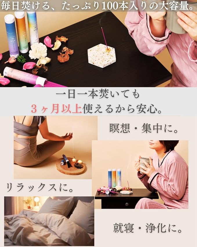 ◾️【大容量 約100本入】別空間のイランイランを約100本入りの大容量でご用意。もっと沢山欲しいとのお声に応えて、たっぷりの本数で気にせず好きなだけ使えます。1日1本使っても3ヶ月以上持ちます。