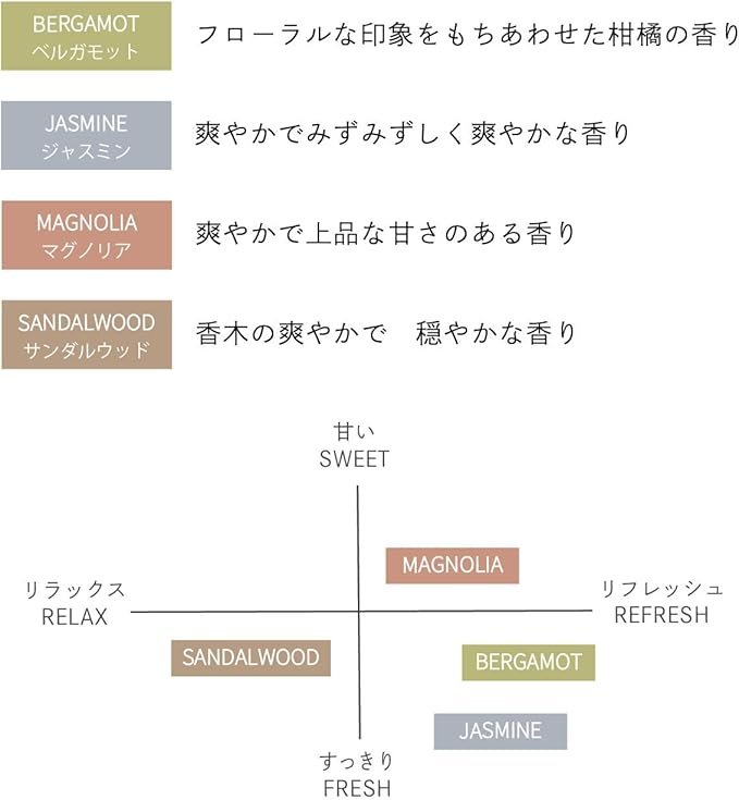 【天然白檀ベースの香り】リラックス効果のある天然香料で、心地よい空間を演出