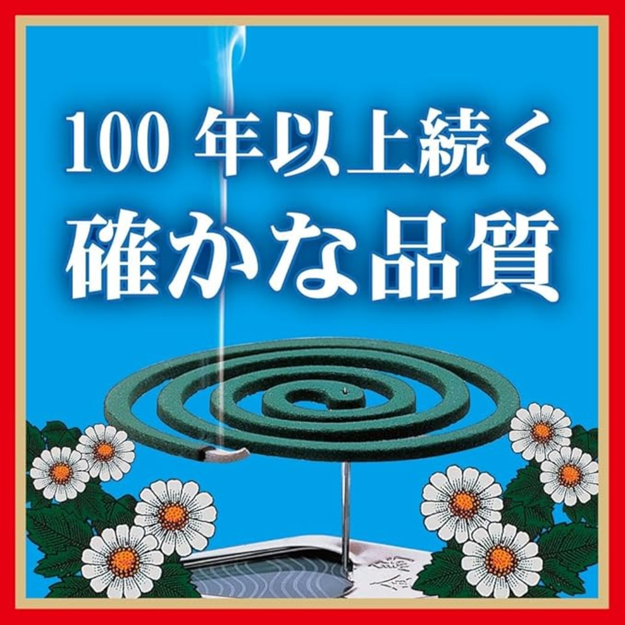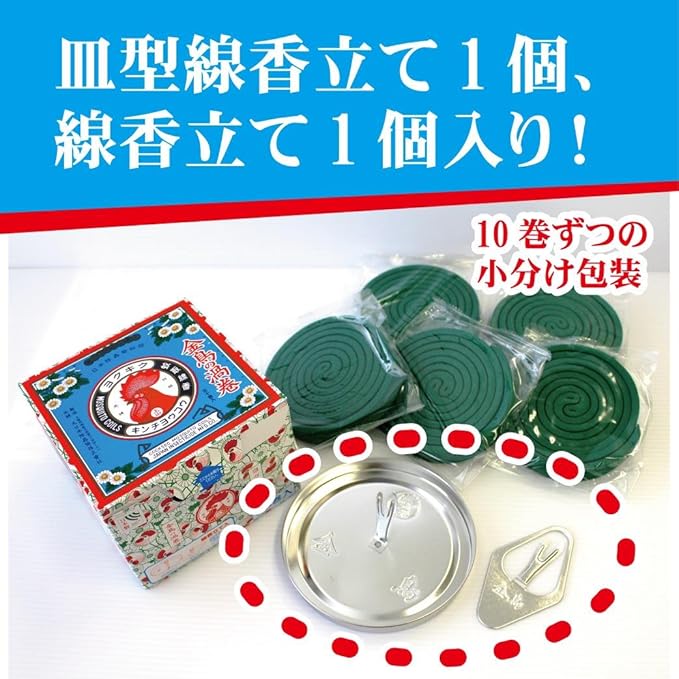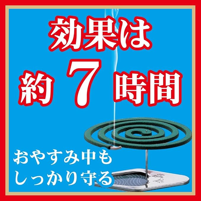 安全性に配慮したピレスロイド系殺虫成分の蚊取り線香です。約7時間安定した効果が得られます。お得な50巻、2種類の線香立て付き。