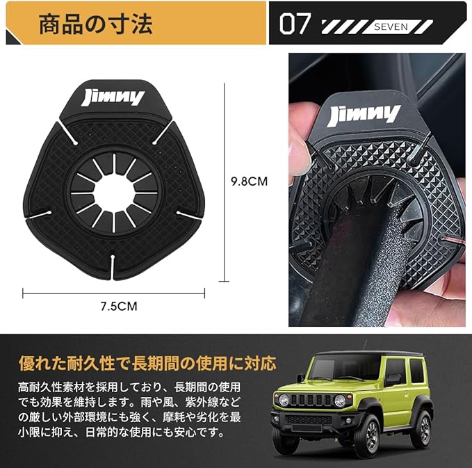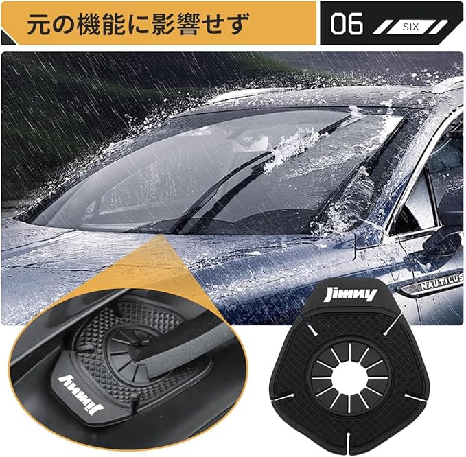 【専用ロゴデザインで車の印象を格上げ|細部に宿る上質なこだわりが個性を引き立て】弊社の製品は新型ジムニーJB23/JB64/JB74W~全シリーズ対応します。ご愛車のブランドイメージや個性をさりげなく確実に強調します。純正パーツとの調和を考慮したロゴ配置とサイズバランスにより、装着時には自然で一体感のある仕上がりを実現。ボンネットからワイパー周辺にかけての視線の流れを美しく整えることで、車両全体に洗練された高級感を演出します。単なるアクセサリーパーツにとどまらず、ドライバーのセンスやこだわりを体現する「見せる機能パーツ」として、日常のカーライフに満足感をもたらします。