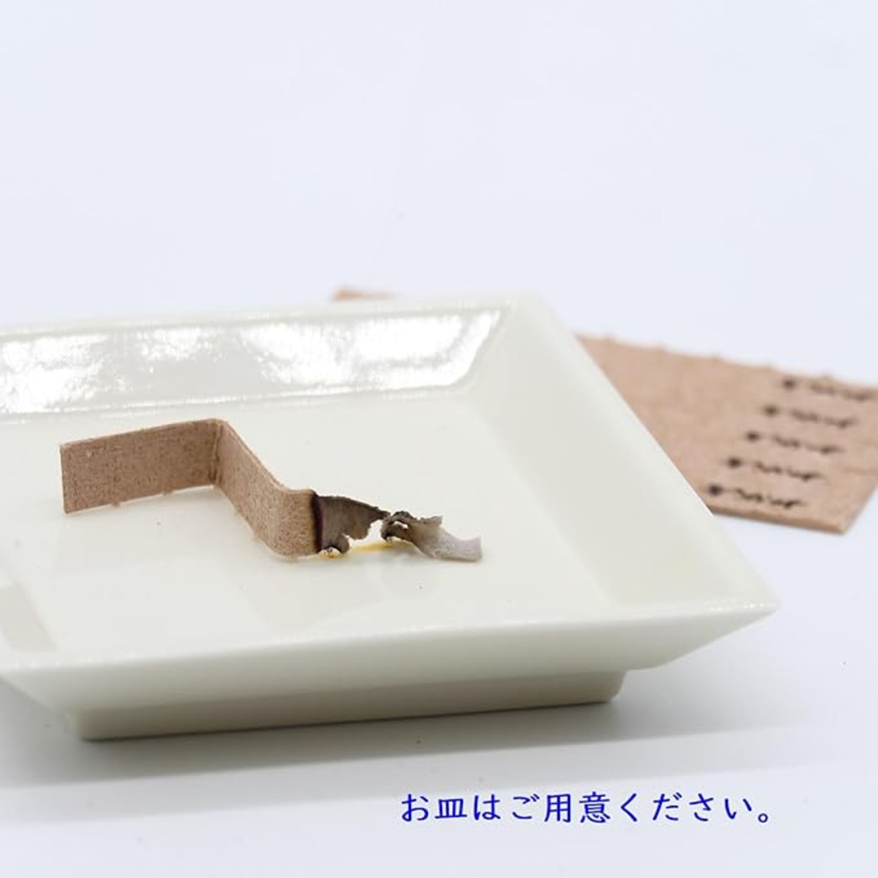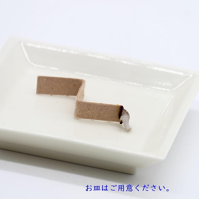 お香職人が紙漉の技術を身につけ、和紙にお香を含ませた和紙香。ミシン線に沿ってちぎって、アコーディオン上に折り曲げ、通常のお香のように火を点け、お皿の上置いてください。灰がなくても燃えます。