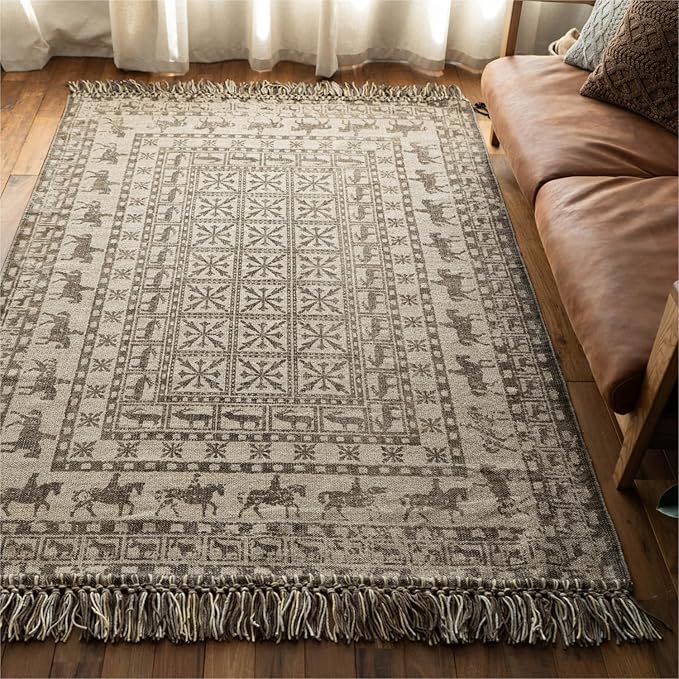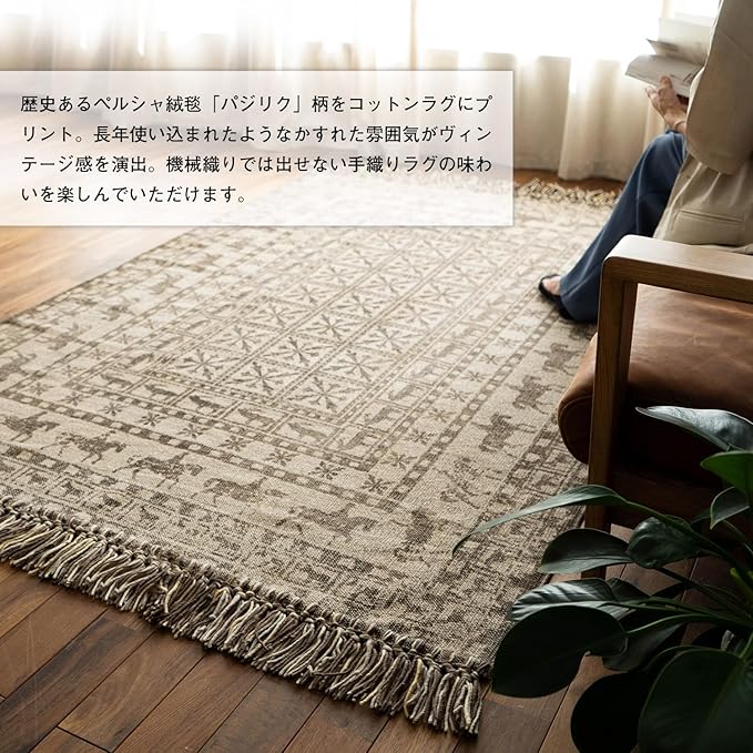 【備考】洗濯可(洗濯ネットをご使用ください、乾燥機は不可) / 折りたたみ可 / 床暖房の上敷き、ホットカーペットカバー対応 (※商品写真は140x200cmを使用しております。)/風合いにこだわる為、糸をミックスしてヴィンテージ感が出るよう作られております。一点一点手作業で作る為に織りムラや歪みなどがございますが、ハンドメイドの味わいをご理解の上ご購入お願いいたします。/フリンジは遊び毛が出やすくなっております。/洗濯時に色落ちする場合がございますので、漂白剤及び漂白剤入りの洗剤のご使用は避け、他の物と分けて単独でお洗いください。洗濯で縮みますのでご注意ください。/完全に乾いた状態でご使用ください。/インド綿製品は色落ちしやすい特性があります。摩擦や水濡れ、汗によって色が移る可能性がございます。/インド綿の特性上、織りムラ、節、ネップ等ございますのでご了承の上、ご購入ください。/ 商品は[丸巻き]または[折りたたみ]の状態でお届けいたします。