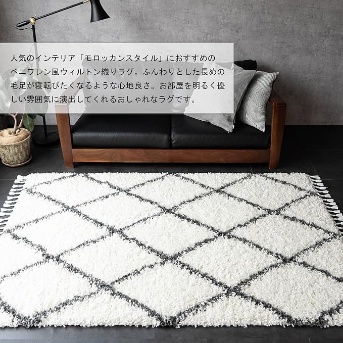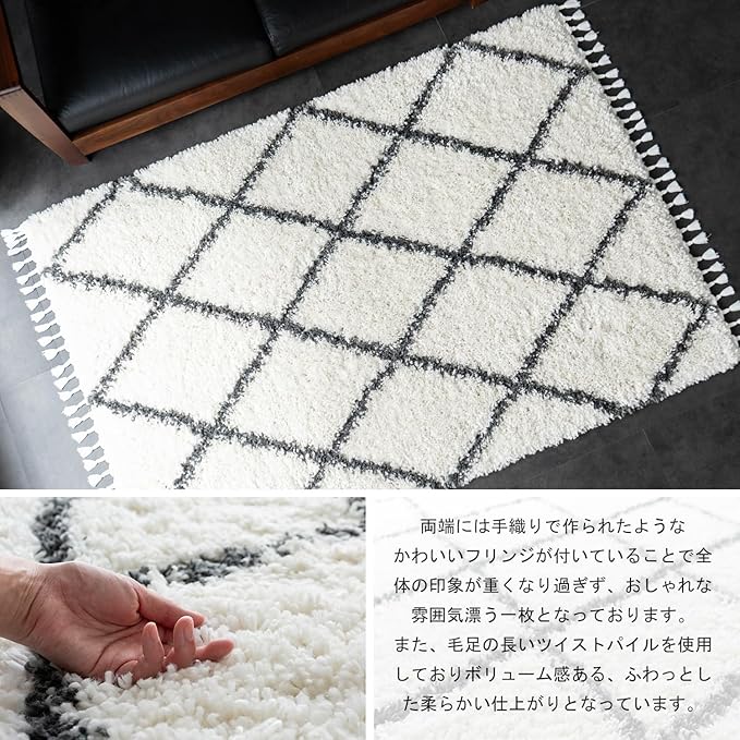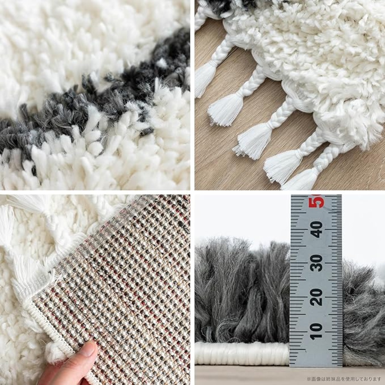 【輸入カーペットを安心してご利用いただくためのお願い】 ●輸入ラグに関して ※同じ商品でも製造ロットの違いによって、サイズや、色味、柄模様の左右が反転していたり、位置がズレている場合がございます。ただし、現地の工場や倉庫での検品をクリアした商品を輸入しています。あらかじめご了承くださいませ。/ ●においに関して ※ご使用当初、裏面に塗られる仕上げの接着塗料(ラテックス剤)のにおいがする場合がございます。人体への影響はありませんが、においに敏感の方や、ご心配の方はご理解の上ご購入お願いいたします。開封後常温のもとで気化(蒸発)するため、においはご使用につれてなくなります。気になる場合は風通しの良いところで陰干ししていただきますと、より早く解消されます。/ ●サイズに関して ※カーペットの製法上、表示サイズより0~3%の誤差がございます。/ ※いずれも商品の初期不良ではございませんので返品・交換は行なっておりません。(※お客様で返品の送料ご負担によるキャンセルは、返品規定に基づきお受けさせていただきます。)/ ※裏面の製品シールは剥がさないでご使用ください。