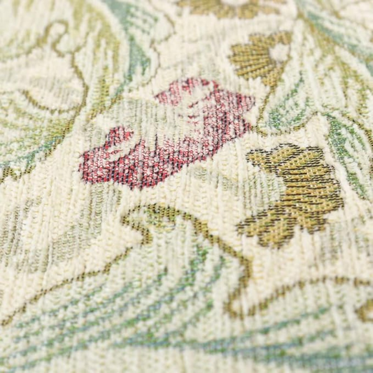 モール糸(シェニール糸)を使ったゴブラン織でふっくらとした厚みがあり、肌触りの良い繊細な織物です