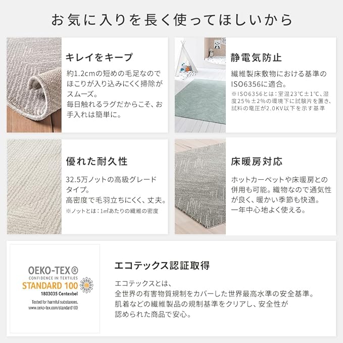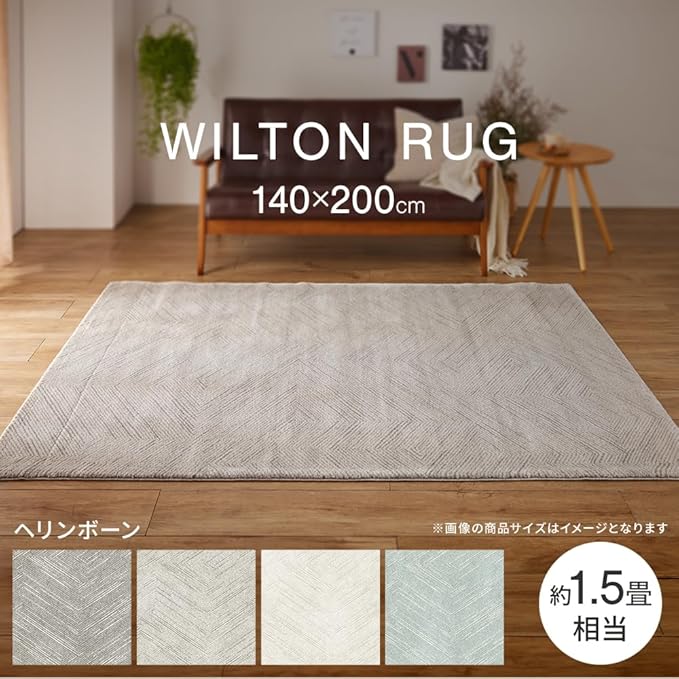 アイリスプラザ 伝統あるヨーロッパ産ウィルトン織ラグ 140 200cm ヘリンボーン グレー エコテックス認証取得 厚さ 1.2cm 静電気防止 床暖房対応 ラグ マット カーペット 54355-670 GY | KAZESHOP