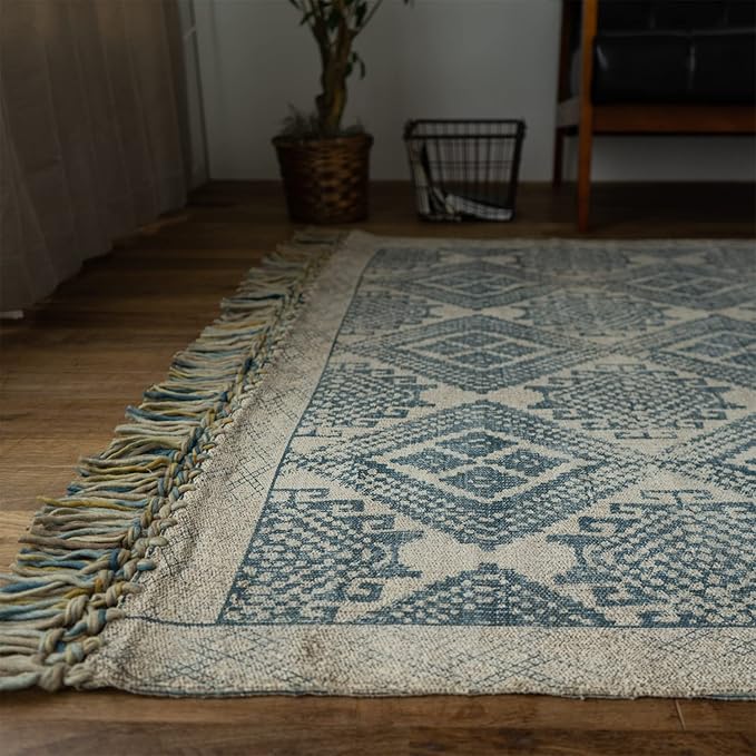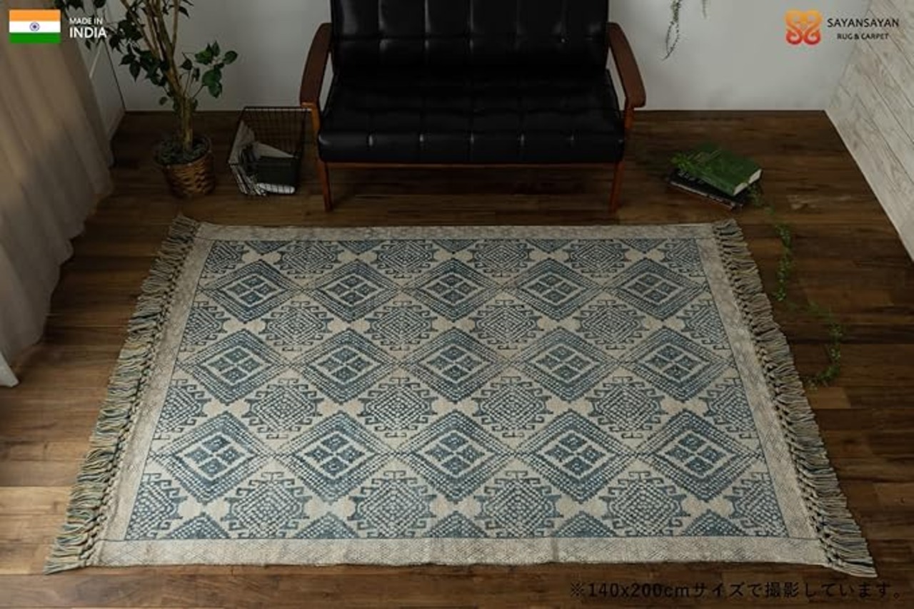 【備考】洗濯可(洗濯ネットをご使用ください、乾燥機は不可) / 折りたたみ可 / 床暖房の上敷き、ホットカーペットカバー対応 (※商品写真は140x200cmを使用しております。)/風合いにこだわる為、糸をミックスしてヴィンテージ感が出るよう作られております。一点一点手作業で作る為に織りムラや歪みなどがございますが、ハンドメイドの味わいをご理解の上ご購入お願いいたします。/フリンジはウール素材となり遊び毛が出ます。/洗濯時に色落ちする場合がございますので、漂白剤及び漂白剤入りの洗剤のご使用は避け、他の物と分けて単独でお洗いください。洗濯で縮みますのでご注意ください。/完全に乾いた状態でご使用ください。/インド綿製品は色落ちしやすい特性があります。摩擦や水濡れ、汗によって色が移る可能性がございます。/インド綿の特性上、織りムラ、節、ネップ等ございますのでご了承の上、ご購入ください。/ 商品は[丸巻き]または[折りたたみ]の状態でお届けいたします。